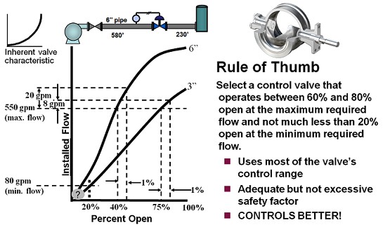 大小事項(xiàng):控制閥尺寸101當(dāng)控制閥的專業(yè)人士談?wù)摗翱刂崎y尺寸,“他們真的意味著選擇閥,將控制過(guò)程的最佳工作的全過(guò)程。選擇正確的閥門尺寸的過(guò)程中的一個(gè)重要部分,但還有其他同樣重要的考慮因素,以及。 控制閥的尺寸的選擇應(yīng)使其在60和80%之間的打開(kāi)操作在最大流量,只要有可能,不小于20%開(kāi)在所需的最小流量。我們的想法是使用盡可能多的閥門的控制范圍,同時(shí)保持一個(gè)合理的,但不要過(guò)度,安全系數(shù)。 如果閥門太小,它會(huì)立即是顯而易見(jiàn)的,因?yàn)樗遣豢赡芡ㄟ^(guò)所要求的流量。在實(shí)踐中,根據(jù)大小的閥門是相當(dāng)罕見(jiàn)的。通常,閥門太大。一個(gè)超大的控制閥的費(fèi)用將超過(guò)是必要的,但更重要的是,一個(gè)超大的閥會(huì)非常敏感。在閥門位置的微小變化會(huì)引起流量變化大。這將使它的準(zhǔn)確調(diào)整到所需的流動(dòng)困難甚至是不可能的。由摩擦引起的任何粘性將由過(guò)度敏感的超大閥的放大,降低精度,可控制流量。 在上面的例子,假定兩個(gè)閥門都可定位在1%,適當(dāng)尺寸的3英寸的閥門能夠控制在8 gpm的流量,而超大的6英寸的閥門只能在20 GPM可以控制流。 空化 液體中的應(yīng)用必須被評(píng)估為空化。不僅空化引起高水平的噪音和振動(dòng),它可以導(dǎo)致閥內(nèi)件和/或下游管道非常快速的損傷。尤其是旋轉(zhuǎn)閥,氣蝕的破壞性的水平的預(yù)測(cè)比簡(jiǎn)單的阻流壓降的計(jì)算更復(fù)雜。由于閥內(nèi)流動(dòng)分離和渦流的形成,減少的壓力和恢復(fù)局部地區(qū)可以在壓力下降低于導(dǎo)致完全阻塞流導(dǎo)致破壞性的空化。一個(gè)證明的方法預(yù)測(cè)旋轉(zhuǎn)控制閥汽蝕破壞的基礎(chǔ)上計(jì)算出的聲壓級(jí)和潛在損害的相關(guān)性。 噪聲 此外,在液體中的服務(wù)一個(gè)嘈雜的閥門將最有可能遭受不可接受的空蝕率,高噪音水平通常會(huì)引起振動(dòng),損壞管道,儀器和其他設(shè)備。在蒸汽和氣體的服務(wù)控制閥可以產(chǎn)生的噪音水平,以及在植物超過(guò)標(biāo)準(zhǔn),即使在適度的壓力下降,特別是在以上3或4英寸的大小。作為一個(gè)結(jié)果,閥門的選型過(guò)程中必須始終包含噪聲的計(jì)算。 安裝流量特性 在幾乎所有的應(yīng)用程序,控制閥應(yīng)具有線性流量特性(在系統(tǒng)控制器的輸出和流量之間的關(guān)系)?刂崎y的固有流量特性(出版)與系統(tǒng)交互的流量和壓力損失特性產(chǎn)生的流量特性。如果安裝特性明顯偏離線性,這將是困難的或不可能的調(diào)諧回路的準(zhǔn)確和穩(wěn)定整個(gè)流量范圍控制。安裝特性的計(jì)算機(jī)分析應(yīng)控制閥的選型過(guò)程的一部分。 執(zhí)行機(jī)構(gòu)選型 施膠上的服務(wù)器是相當(dāng)簡(jiǎn)單的,只需要一個(gè)致動(dòng)器被選擇的輸出轉(zhuǎn)矩比的座位和脫圈的閥門扭矩稍高。情況更為復(fù)雜的控制閥。大多數(shù)的旋轉(zhuǎn)器的變化與開(kāi)啟角度扭矩輸出。同時(shí),閥門的扭矩要求取決于開(kāi)口角度和節(jié)流壓降在特定的角度。保證充足的備用扭矩保證順暢,準(zhǔn)確控制,計(jì)算機(jī)分析建議。 控制閥選型 控制閥式選擇(球,球,蝴蝶,等)通常是基于傳統(tǒng)或植物的選擇。例如,大多數(shù)在紙漿和紙米爾斯控制閥通常球或分段球閥。煉油廠使用傳統(tǒng)的截止閥比例很高,盡管逃犯排放已引起關(guān)注的用戶去旋轉(zhuǎn)閥是因?yàn)樗菀椎玫揭粋(gè)旋轉(zhuǎn)閥長(zhǎng)期持久的閥桿密封。 截止閥的流量特性,壓力,溫度的選擇范圍最廣,和噪聲減蝕。截止閥也往往是最貴的。段球閥往往有一個(gè)更高的幅度,和尺寸大小,近兩倍截止閥的流量,而他們通常低于截止閥。另一方面,段球閥在溫度、壓力和極端的可用性限制比截止閥更容易產(chǎn)生噪聲和汽蝕問(wèn)題。 高性能蝶閥球閥甚至比不太昂貴的,特別是在較大的尺寸(八英寸或更大)。他們也比球閥不可調(diào)范圍和更易發(fā)生汽蝕。 偏心旋塞閥結(jié)合旋轉(zhuǎn)閥的特點(diǎn),如高循環(huán)壽命閥桿密封,結(jié)構(gòu)緊湊,堅(jiān)固的結(jié)構(gòu)與截止閥。不像其他的旋轉(zhuǎn)閥流量的大約兩倍的截止閥,偏心旋轉(zhuǎn)旋塞閥的流量與截止閥。 而一個(gè)閥式的選擇是非常主觀的,在一個(gè)指定的閥或植物偏愛(ài)的缺失,以下的方法可以用來(lái)選擇一種控制閥式應(yīng)用中的閥門將六英寸或更小的: —考慮壓力,壓力差,溫度,所需的流量特性,氣蝕和噪聲,將一段球閥的工作嗎? —如果一段球閥是不合適的,選擇一個(gè)截止閥。記住,籠截止閥不適用于骯臟的服務(wù)。 —應(yīng)用中的閥門將8英寸或更大,首先探討了高性能蝶閥的適用性由于在成本和重量的顯著節(jié)省的潛力。 保證測(cè)量精度 今天,控制閥口徑計(jì)算通常是使用一個(gè)計(jì)算機(jī)程序的執(zhí)行。大多數(shù)控制閥制造商提供控制閥選型軟件在沒(méi)有任何成本,盡管大多數(shù)特定于該制造的閥門。美卓的nelprof,然而,包括一些通用的閥門,如球閥,球閥,旋塞閥和蝶閥,選擇。這些通用的選擇,允許用戶探索不同的閥門類型和大小是否適用于某一特定的應(yīng)用,沒(méi)有表現(xiàn)出偏